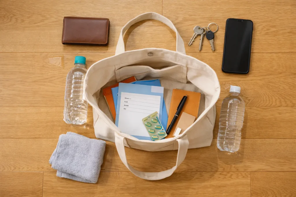 次に、当日に必ず必要なものを、ひとつのバッグにまとめておきます。
