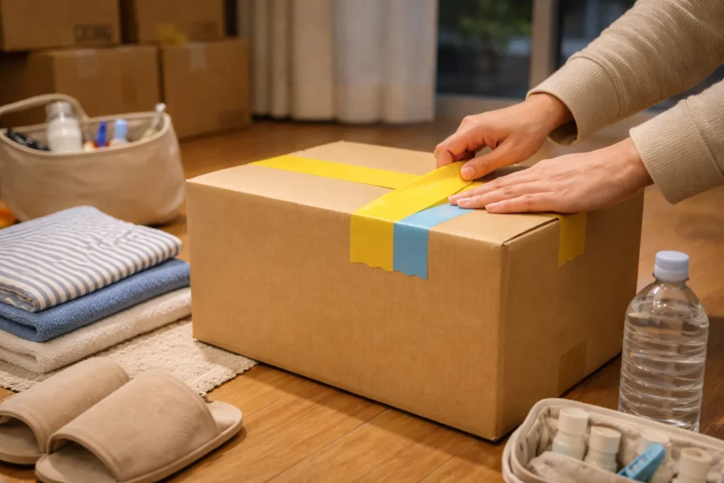 - できれば、他の箱と見分けがつくように、目立つテープやシールを貼っておく