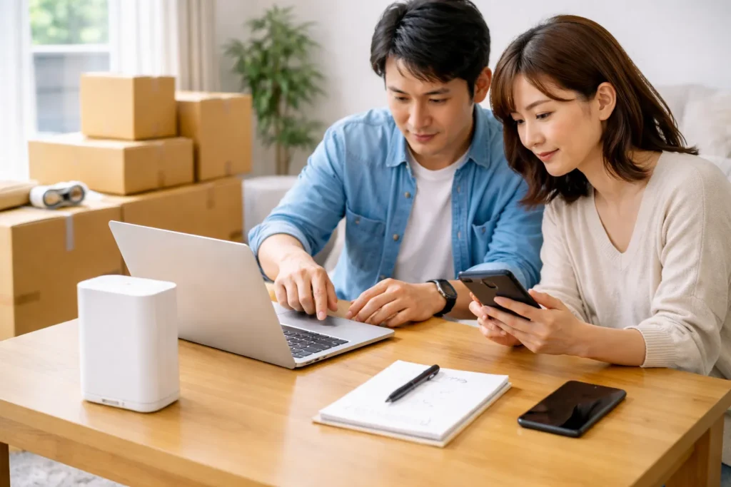 ネット選び以外にもやることが多い時期なので、引っ越し後(当日〜2週間)の優先順位も先に見ておくと、比較で止まりにくくなります。