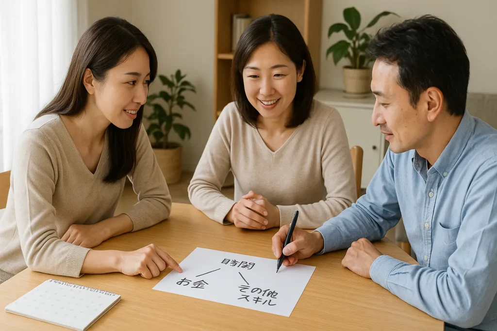 2. ステップ2:「時間」「お金」「その他スキル」で役割分担を考える