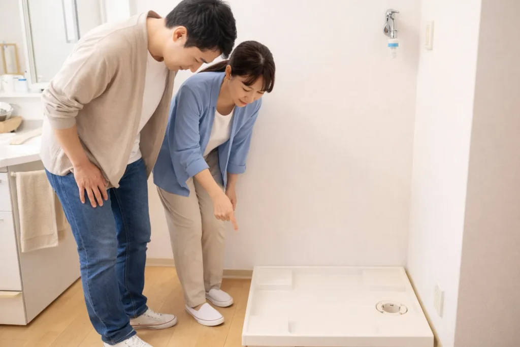 対策: 洗濯機は、防水パン・蛇口・排水口までセットで確認します。