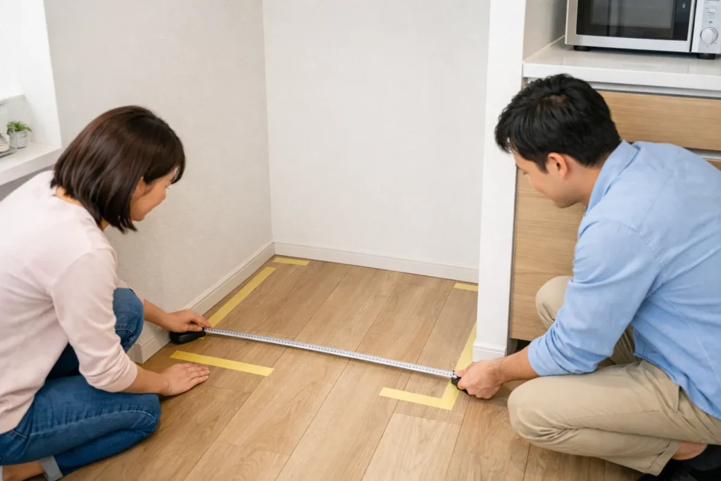 コツ:採寸は「置く場所」だけじゃなく、“運ぶ道”(玄関→廊下→ドア)を測ると失敗が激減します。