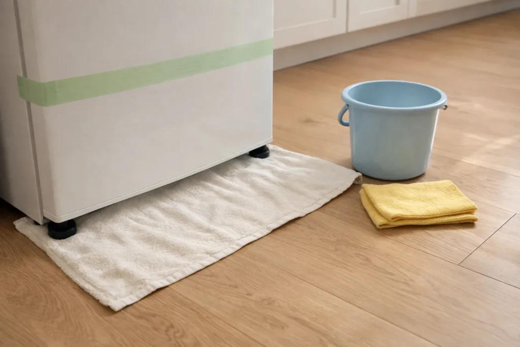 ⚠ 注意:冷蔵庫の水は“意外と出ます”。床が濡れると掃除が増えるので、下に敷くのはほぼ必須。
