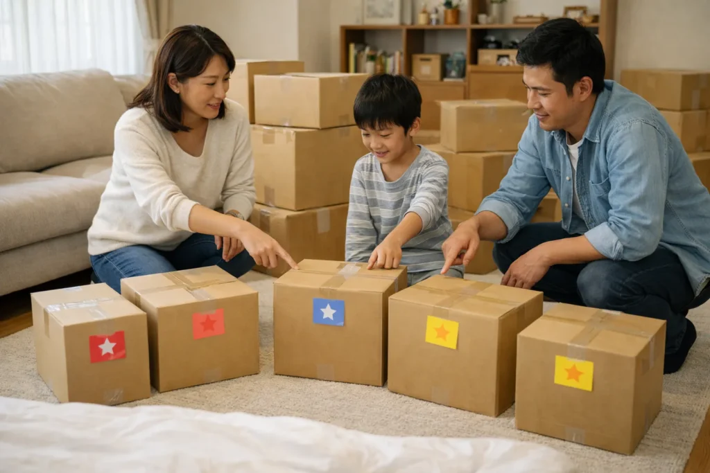 - 飾りやおもちゃの箱には、優先度★1〜2(あとでも良い箱)をつけておく